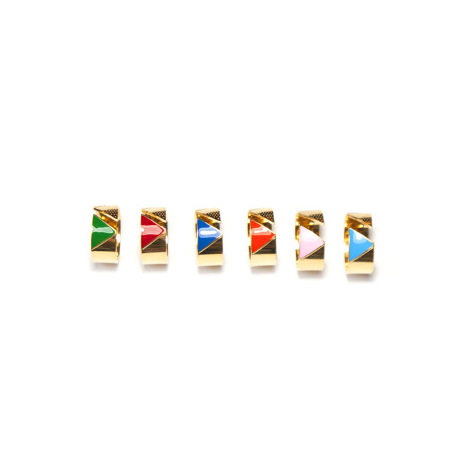 Matériaux : Laiton recouvert d’or 24k, émail.